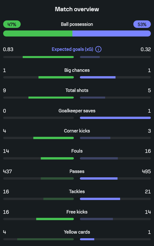 - xG (Expected Goals): เอาก์สบวร์ก 0.83 – ดอร์ทมุนด์ 0.32