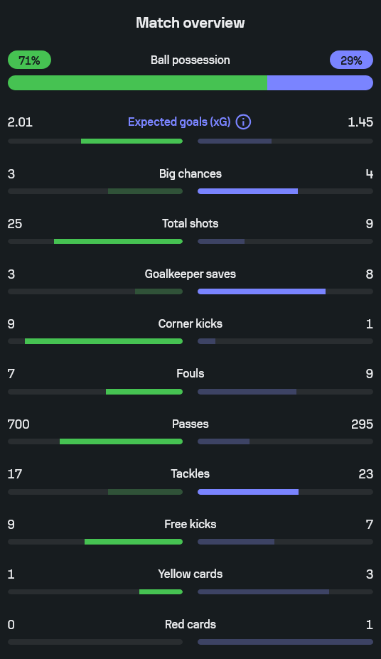 - โอกาสยิงรวม: PSG 25 ครั้ง – บาเยิร์น 9 ครั้ง
