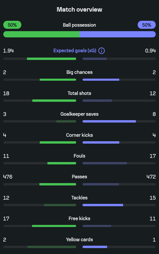 - ค่าความคาดหวังประตู (xG) ซิตี้ 1.94 / ดอร์ทมุนด์ 0.94