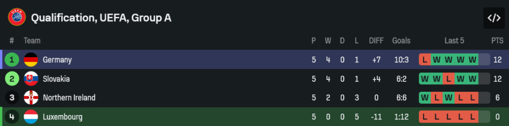 - ครองบอล: ลักเซมเบิร์ก 35% – เยอรมนี 65%