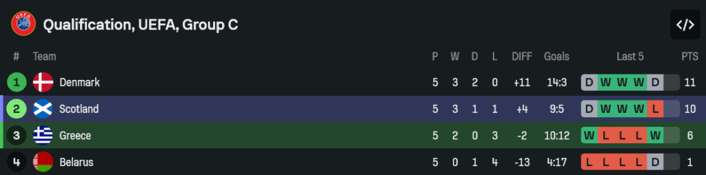 - บิ๊กชานส์: กรีซ 4 – 6 สกอตแลนด์