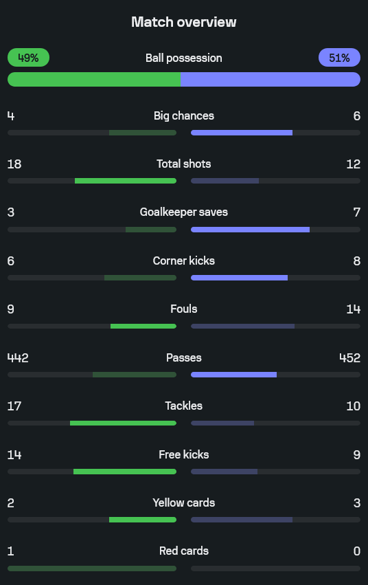 - โอกาสยิงรวม: กรีซ 18 ครั้ง – สกอตแลนด์ 12 ครั้ง