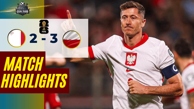 ไฮไลท์บอลคัดบอลโลกโซนยุโรปเดือด! เลวานยิง–ซิเอลินสกี้ซัดปิด มอลตาสู้สุดใจก่อนพ่ายโปแลนด์ 2-3 เกมมันส์กว่าที่คิด อนาคตขาวแดงเริ่มมีหวัง