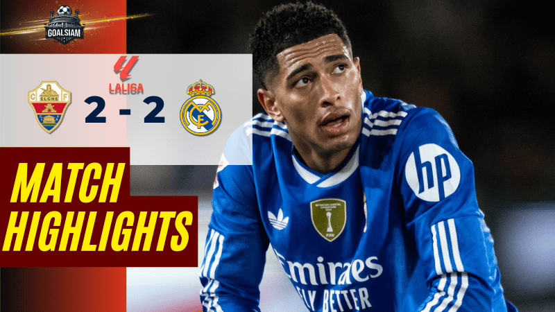 ไฮไลท์บอลลาลีกา ดราม่าทดเจ็บ เบลลิงแฮมกู้หน้า มาดริดไล่เจ๊าเอลเช่ 2-2 ยังต้องลุ้นแชมป์กันยาวๆ