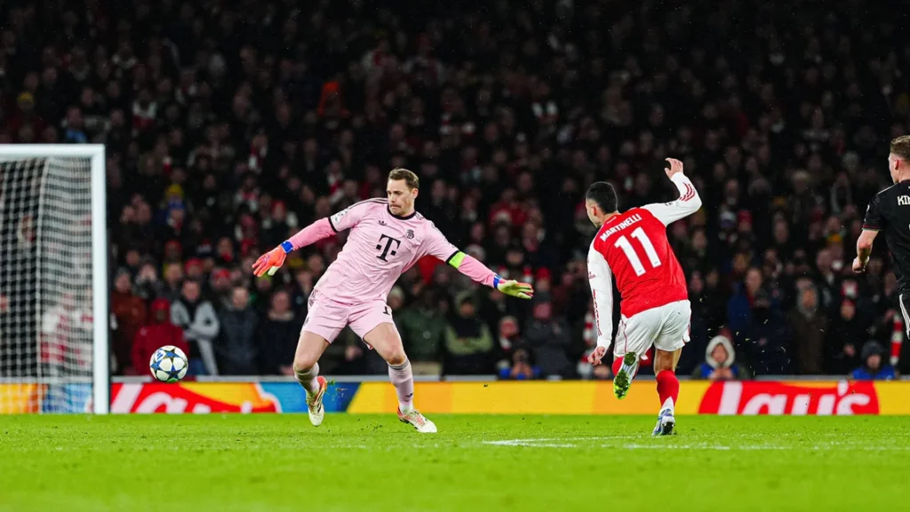 บาเยิร์นมาถึงลอนดอนในฐานะ “จ่าฝูงบุนเดสลีกา” และทีมฟอร์มโหดที่สุดทีมหนึ่งของยุโรป แต่เจ้าถิ่นไม่ปล่อยให้ทีมเยือนตั้งลำง่าย ๆ เกมของอาร์เซนอลอาศัยสปีดบอลเร็ว กดดันสูงตั้งแต่แดนหน้า และใช้จังหวะเซ็ตเพลย์เล่นงานอย่างมีประสิทธิภาพ