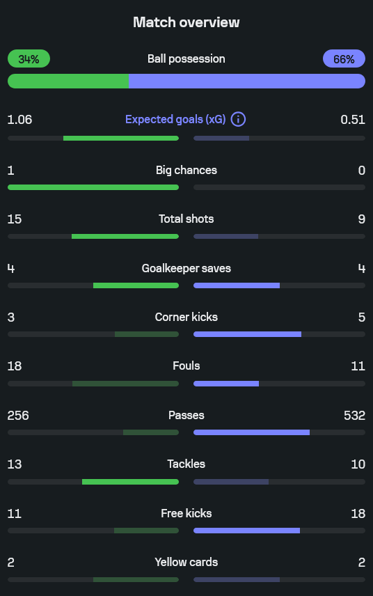 • ค่า xG: เกตาเฟ่ 1.06 – 0.51 เอลเช่ บอกเลยว่าจังหวะลุ้นประตูฝั่งเจ้าบ้านมีคุณภาพกว่า