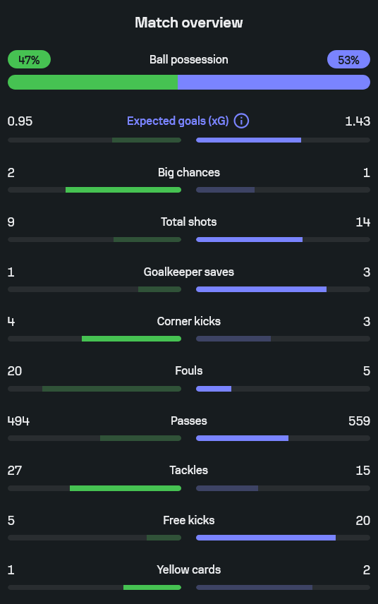 - ค่า xG: เจ้าบ้าน 0.95 – 1.43 ทีมเยือน บอกเลยคิโรน่าคมกว่า