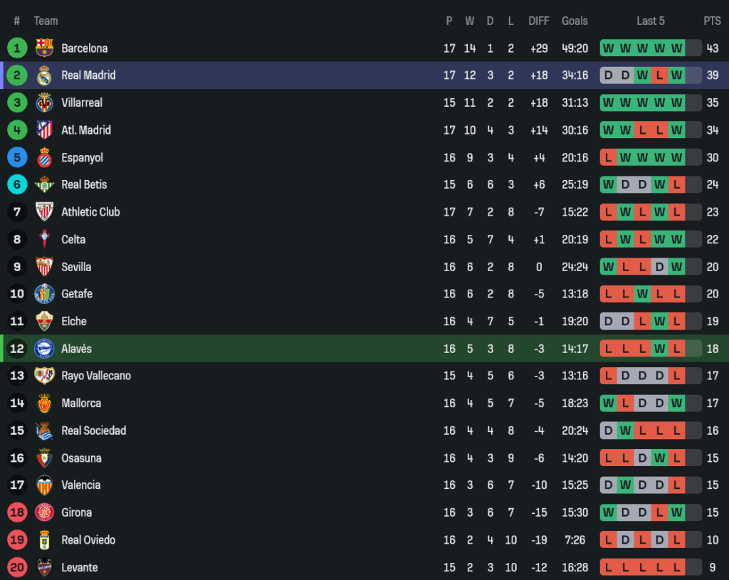 - หลังจบนัดนี้ มาดริดมี 39 แต้ม ตามหลังบาร์ซ่า 4 แต้ม ลุ้นแชมป์ลาลีกายังเดือด ส่วนอลาเบสอยู่กลางตารางแบบหายใจโล่งขึ้นนิดหนึ่ง