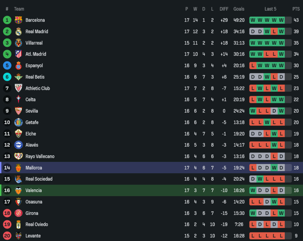 - ยิงทั้งหมด: บาเลนเซีย 17 ครั้ง vs มายอร์ก้า แค่ 4 ครั้ง
