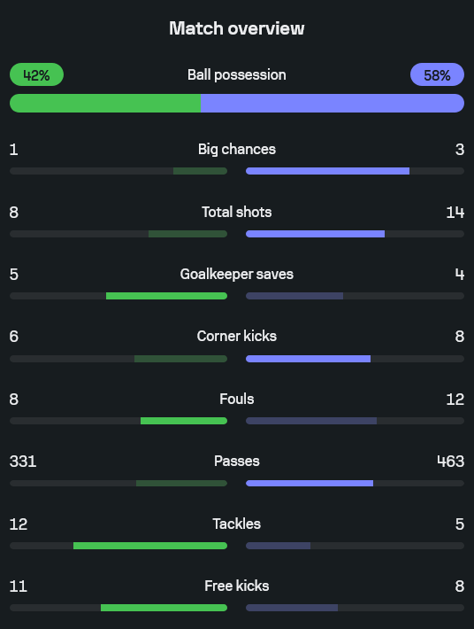 • อินเตอร์ครองบอล 58% ต่อ 42% แต่จบไม่ลง