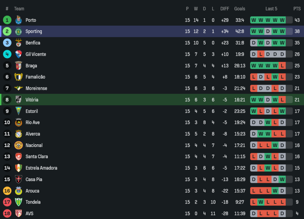 - จำนวนยิงทั้งหมด: วิตอเรีย 17 ครั้ง – สปอร์ติ้ง 16 ครั้ง ยิงพอๆ กันแต่ความแม่นต่างกันชัด