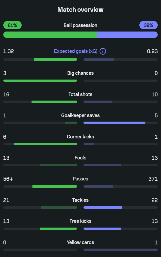 - ค่าคาดหวังประตู (xG) โรม่าประมาณ 1.32 เจนัว 0.93 แปลว่ามีโอกาสเน้น ๆ อยู่เรื่อย