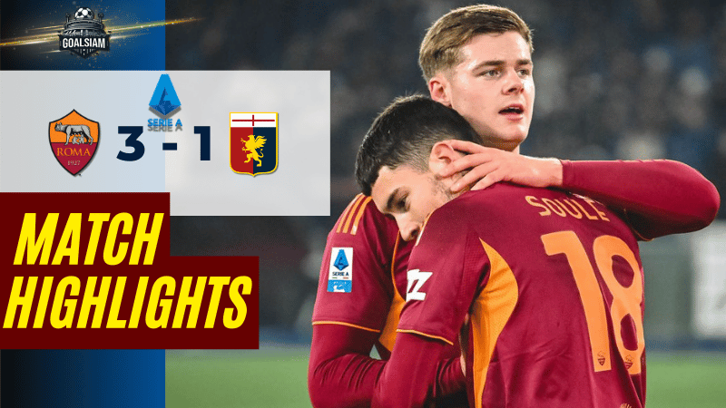 ไฮไลท์บอลกัลโช่เดือด! โรม่าไล่ขย้ำเจนัว 3-1 เฟอร์กูสัน–โกเน่–โซเล่ ยิงยับ ดันหมาป่าลุ้ยพื้นที่ยุโรปต่อเนื่อง