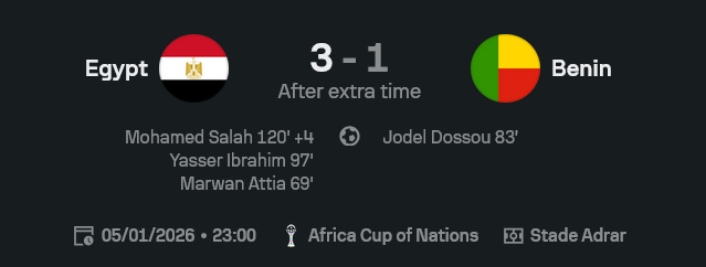 ⚽ สรุปเกมเดือด อียิปต์ 3-1 เบนิน (ต่อเวลา)