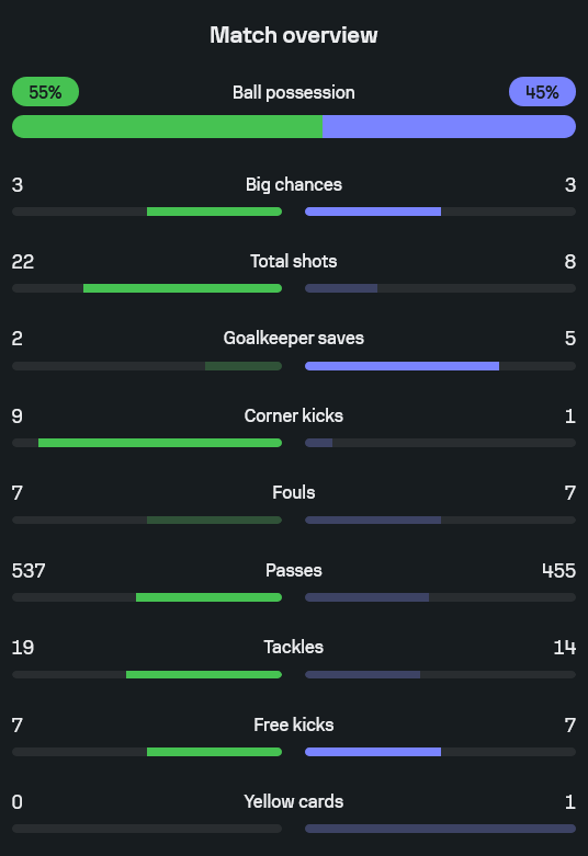 - เจ้าบ้านยิงทั้งหมด 22 ครั้ง เข้ากรอบเพียบ แต่เจอเซฟของกูร์กตัวส์ถึง 5 ครั้ง