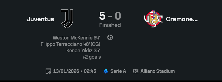 มุมมองของ GOALSIAM ต้องบอกว่า เกมนี้คือเทสเลเวลว่าใครจะอยู่โซนลุ้นแชมป์ ใครต้องหนีตกชั้นชัดๆ แท็กติกของยูเว่แน่นเปรี๊ยะ ขยับบอลเร็ว เปลี่ยนแกนไว ทุกคนวิ่งซ้อนกันรู้จังหวะหมด จนมิดฟิลด์เครโมเนเซ่ไล่ยังไงก็ไม่ทัน กองหลังทีมเยือนเหมือนตั้งกรวยให้คู่แข่งซ้อมยิง ประตูที่เสียแทบทุกลูกคือหลุดตำแหน่งเองล้วนๆ แบบนี้ต่อให้วิเคราะห์บนกระดานยังไงก็รอดยาก เกมนี้เลยเป็นตัวอย่างของคำว่า วิเคราะห์บอล ว่า “ถ้าระบบทีมไม่แน่น ความผิดพลาดเล็กๆ จะโดนทีมใหญ่ลงโทษจนยับ” ยูเว่เก็บสามแต้ม ขยับแต้มเท่ากับกลุ่มหัวตาราง ไล่กดดันอินเตอร์กับมิลานต่อไป ส่วนเครโมเนเซ่ต้องรีบเคลียร์เกมรับ ไม่งั้นหล่นไปโซนอันตรายแน่นอน