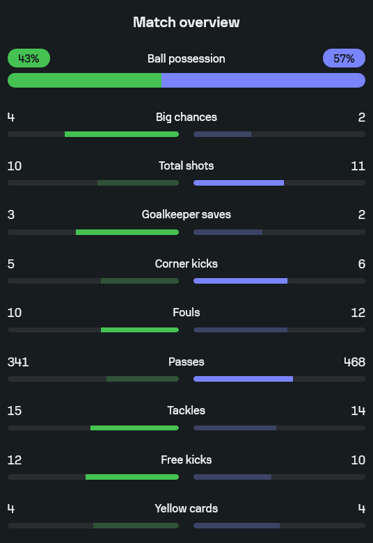 - เตะมุม 5-6, ฟาวล์ 10-12, ใบเหลืองฝั่งละ 4 ใบ เกมนี้ทั้งสองทีมเข้าบอลกันดุแบบไม่มีสงสาร
