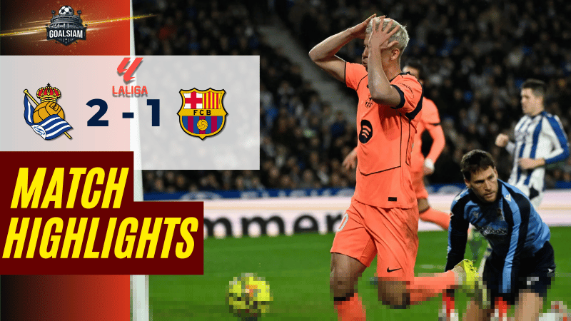 GOALSIAM นั่งดูเกมนี้แล้วต้องเช็กสกอร์จากหน้าจอ ผลบอลสด ซ้ำอีกรอบ เพราะบาร์เซโลน่าจ่าฝูงที่ยิงใครก็ง่ายช่วงหลัง ดันบุกมาพลาดท่าให้เรอัล โซเซียดาด 2-1 ในศึก ลาลีกา สเปน 2025/26 ทั้งที่รูปเกมบาร์ซ่าบุกอยู่ข้างเดียว แต่โดนเจ้าบ้านสอนบอลเรื่องความคมและใจเกินร้อย