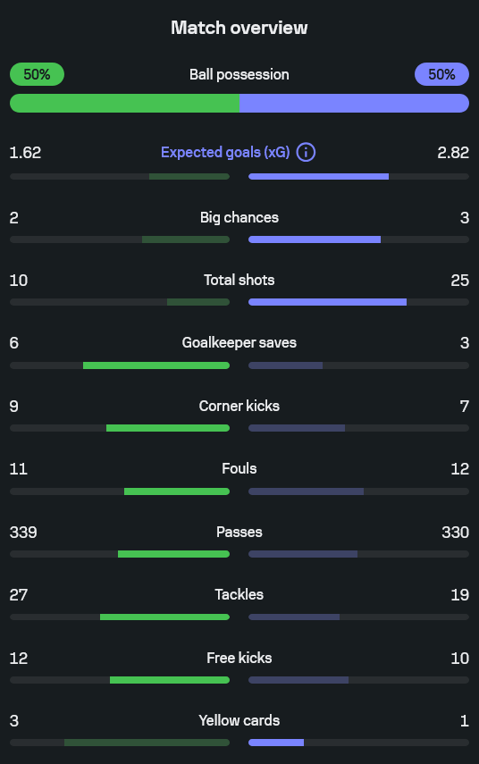 ฝั่งเซบีย่า ชัดเลยว่าขาดความคมช่วงต้น ทั้งที่ตัวอย่าง ซัวโซ, โซว์, อากูเม่ ขึ้นเกมได้เรื่อยๆ แต่กว่าจะเปลี่ยนเป็นประตูได้ต้องรอให้ส่ง อดัมส์ ลงมา เพราะพี่แกเล่นแบบหัวหอกหิวข้าวทุกจังหวะ โหม่งลูกแรกอย่างกับกดปุ่ม แล้วปิดจ๊อบด้วยจุดโทษเยือกเย็นเหมือนไม่มีความกดดัน ยิ่งดูสถิติ xG 2.82 กับจำนวนยิง 25 ครั้ง จะรู้เลยว่าเซบีย่าคืนนี้บุกจริงจัง