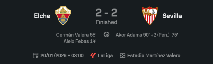 🏟️ เอลเช่ 2-2 เซบีย่า