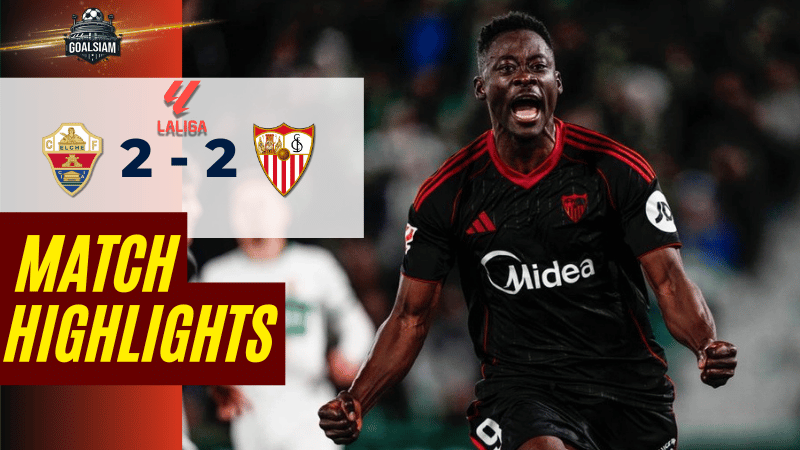 ไฮไลท์บอล ลาลีกา สเปน 2025/26 ดราม่าทดเจ็บ! อาเคอร์ อดัมส์ เหมาสอง เซฟหน้าเซบีย่าไล่เจ๊าเอลเช่ 2-2 ลุ้นหนีตายยังไม่จบ