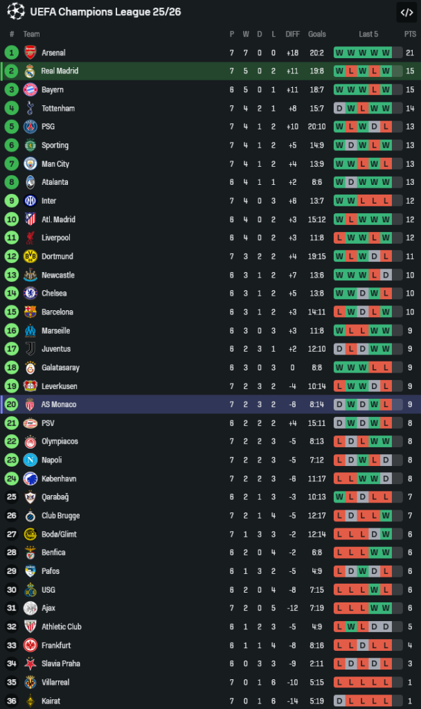 • ชัยชนะนัดนี้ดัน มาดริด ขึ้นไล่หายใจรดต้นคอจ่าฝูงในตาราง ยูฟ่า แชมเปี้ยนส์ ลีก 2025/26 ส่วนโมนาโกหล่นไปโซนลุ้นรอดแบบเครียดๆ