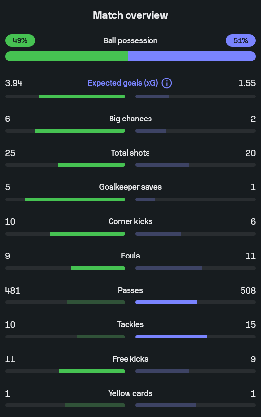 • xG เจ้าถิ่นโดดไปเกือบ 4.0 ส่วนโมนาโกแค่ราว 1.5 บอกชัดว่าโอกาสคุณภาพใครแน่นกว่ากัน
