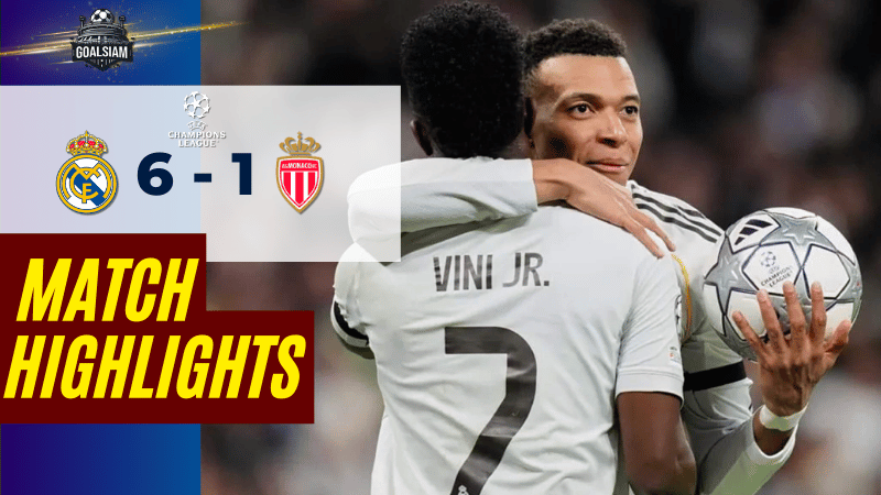 ไฮไลท์บอล ยูฟ่า แชมเปี้ยนส์ ลีก – ชุดขาวโหมดโหด วินิซิอุส-เอ็มบัปเป้ กดโชว์ เรอัล มาดริด ถล่มโมนาโก 6-1 กดดันจ่าฝูงต่อเนื่อง