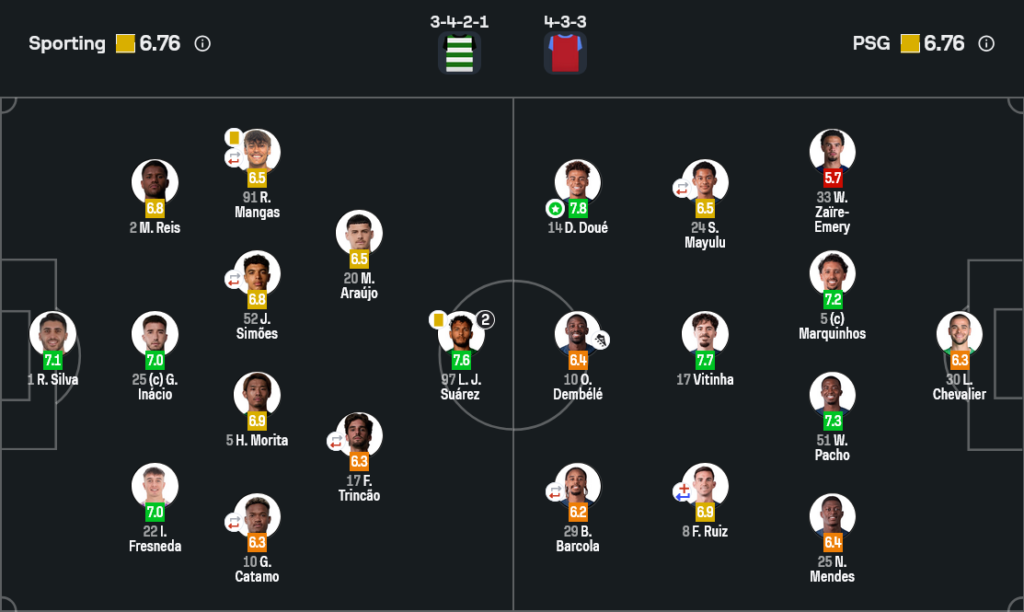 - แมน ออฟ เดอะ แมตช์ ตกเป็นของ เดซีเร ดูเอ้ ปีกดาวรุ่งเปแอสเช เรตติ้ง 7.8 แม้ทีมแพ้ก็ตาม