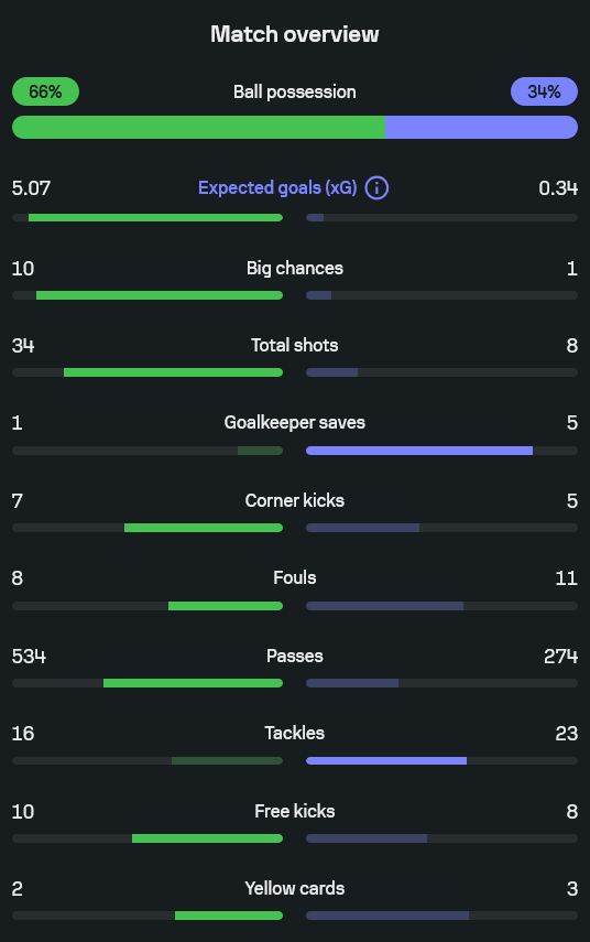 ตัวเลขทุกอย่างตะโกนดังๆ ว่า “งูใหญ่บุกอยู่ฝั่งเดียว” มีแค่สกอร์ช่วงต้นเกมเท่านั้นที่แอบเล่นมุกหลอกแฟนไปหน่อย