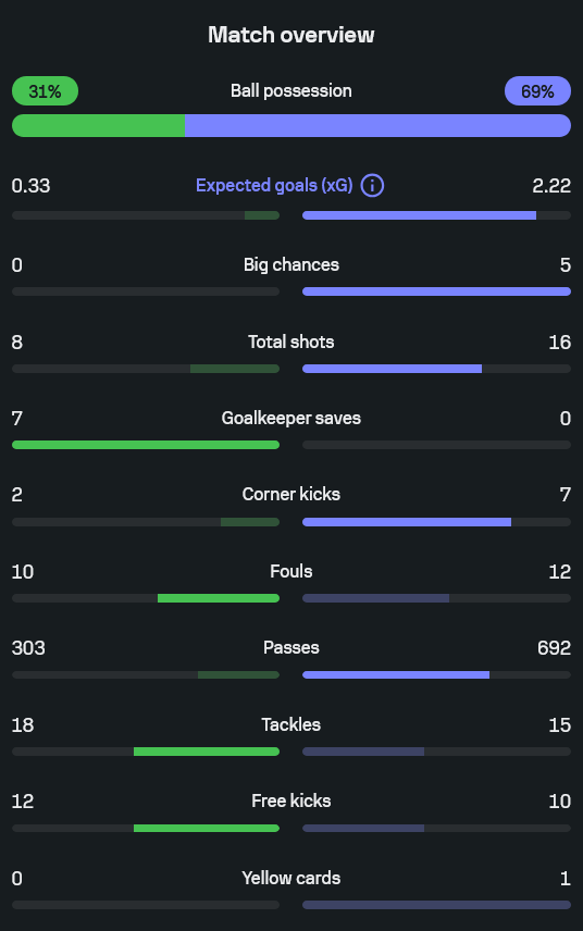 - ค่าความคาดหวังประตู (xG) โอแซร์ 0.33 – เปแอสเช 2.22