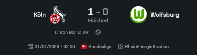⚽ โคโลญจน์ 1-0 โวล์ฟสบวร์ก