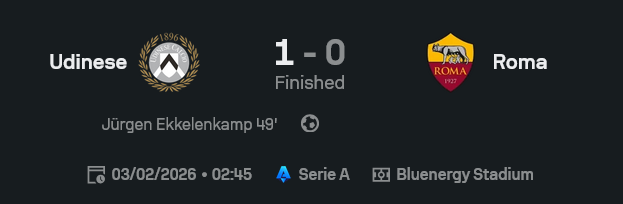 🏟️ อูดิเนเซ่ 1-0 โรม่า