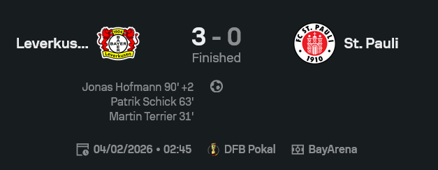 GOALSIAM ขอเล่า นี่คือเกมที่ “เลเวอร์คูเซ่น” ทำให้คำว่า ผลบอลสด ดูเหมือนสคริปต์ที่เขียนไว้ล่วงหน้าเลย…คุมทรงนิ่ง ๆ แล้วค่อย ๆ บีบจน “ซังต์ เพาลี” หายใจไม่ทั่วท้อง ก่อนปิดจ็อบสวย ๆ 3-0 ที่ BayArena ในศึกเดเอฟเบ โพคาล 2025/26 ใครเปิดหา ไฮไลท์บอลวันนี้ บอกเลยมีครบทั้งจังหวะคม ๆ และความต่างชั้นแบบไม่ต้องตะโกน