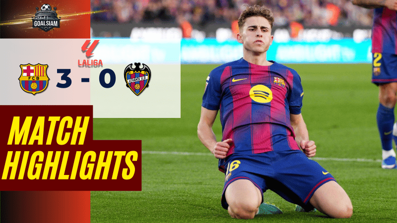 GOALSIAM ขอเล่าแบบคนดูบอลตัวจริงนะ นี่มันเกมที่บาร์เซโลน่าเล่นเหมือนเปิดโหมด “ไม่คุยเยอะ” กดตั้งแต่นาทีแรกจนเลบันเต้แทบไม่ได้หายใจ สกอร์ขาด 3-0 แต่รูปเกมนี่ขาดยิ่งกว่า ใครเปิดดู ผลบอลสด แล้วงงว่าเลบันเต้หายไปไหน ไม่ต้องงง…โดนบาร์ซ่าครองเกมกลืนทั้งสนาม