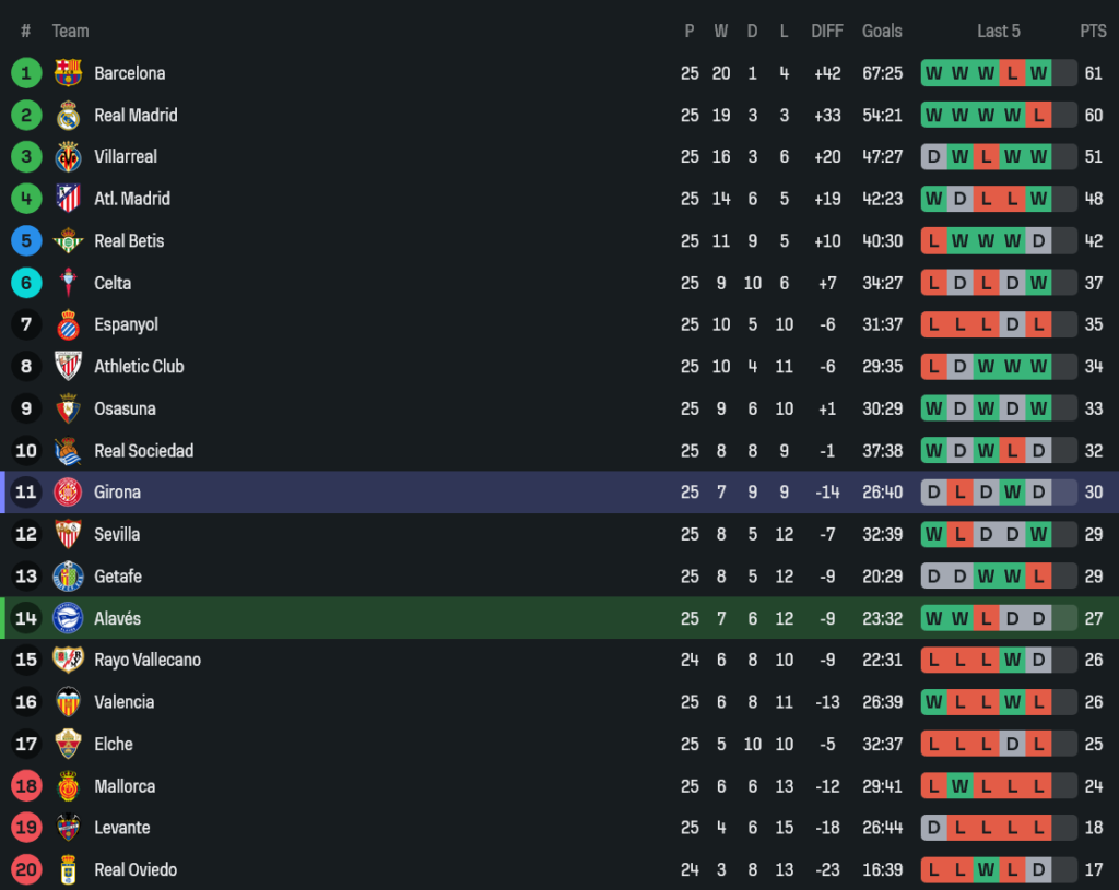 • จ่ายบอล: อลาเบส 417 | จีโรน่า 540