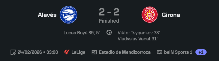 GOALSIAM ขอสรุปให้สั้นแต่คม นี่คือเกม ลาลีกา สเปน 2025/26 ที่เหมือนนัดซ้อมหัวใจคนเชียร์ อลาเบสยิงไว นำก่อน โดนตีเสมอ โดนแซง แล้วค่อยกลับมาเอาแต้มคืนท้ายเกมแบบ “เอ้า…จะให้ตายจริงเหรอ” จบที่ ผลบอลสด อลาเบส 2-2 จีโรน่า ใครหา ไฮไลท์บอลวันนี้ ต้องรีบเปิดดู เพราะมีครบทั้งจังหวะคม ๆ และอารมณ์เกมที่แกว่งเหมือนรถเมล์เบรกแตก