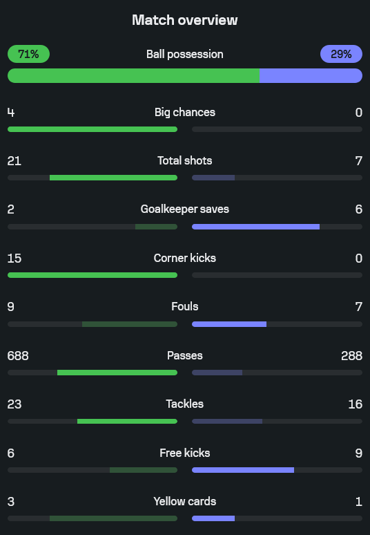 - นาที 72 เบร์นาลเบิ้ลอีกลูก 3-0 จากลูกเตะมุมอีกครั้ง คราวนี้คันเซโล่เปิดมาให้จบแบบระยะเผาขน