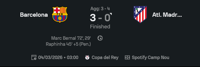 บอกเลยว่านี่คือเกมที่บาร์เซโลน่ากดคันเร่งแบบไม่ถามใคร ตั้งแต่ต้นจนจบ แอตเลติโก มาดริดแทบไม่ได้ตั้งลำ โดนบีบ โดนล้อม โดนเล่นงานด้วยลูกตั้งเตะล้วนๆ สุดท้ายจบ 90 นาที บาร์ซ่าชนะ 3-0 แบบเห็นภาพชัดว่าคุมเกมอยู่มือ แต่พอหันไปดูสกอร์รวมสองนัด ยังตามอยู่ 3-4 แบบเจ็บจี๊ด