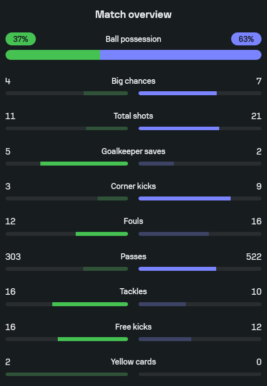 - ผู้เล่นคะแนนสูงสุดคือ โอมาร์ มาร์มูช 8.8 หลังยิง 2 ประตูและปั่นป่วนแนวรับตลอดเกม