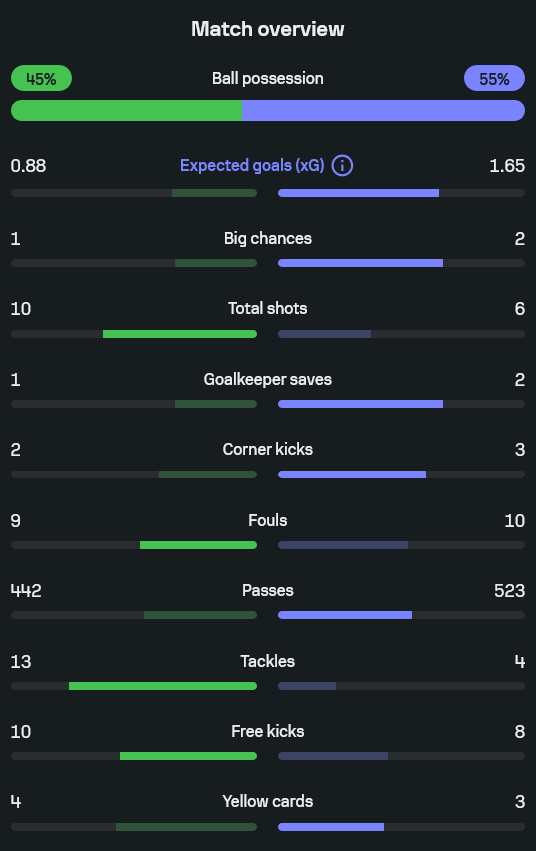 • xG อาร์เซนอลดีกว่า 1.65 ต่อ 0.88