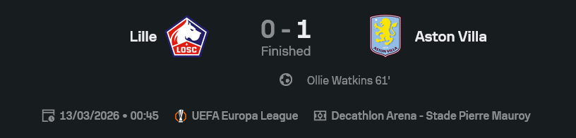 ถ้ามองแบบ วิเคราะห์บอล เกมนี้ลีลล์ไม่ได้แย่ แต่ขาดทีเด็ดในจังหวะสุดท้าย ขณะที่แอสตัน วิลล่าเล่นแบบทีมรู้ทาง เกมไม่ต้องหรู แต่เอาผลได้จริง พอนำแล้วก็จัดการจังหวะเกมได้หมด ทั้งชะลอ ทั้งตัดตอน จนเจ้าบ้านเสียทรงไปเอง เลกสองยังไม่จบง่าย แต่ลีลล์ต้องคมกว่านี้เยอะ