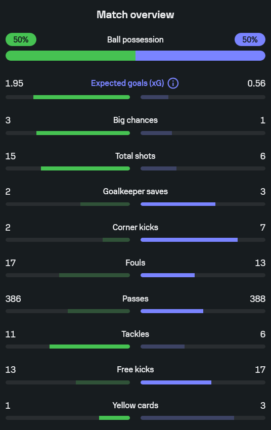 - ครองบอลเท่ากัน 50-50