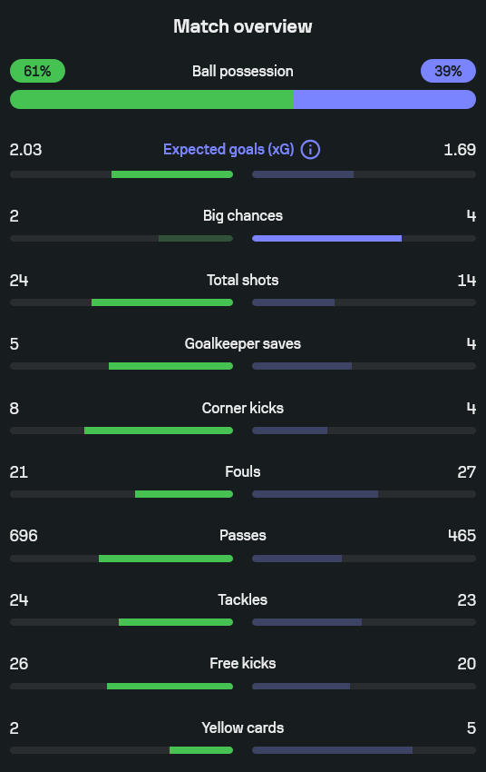 • ครองบอล 61% ต่อ 39%