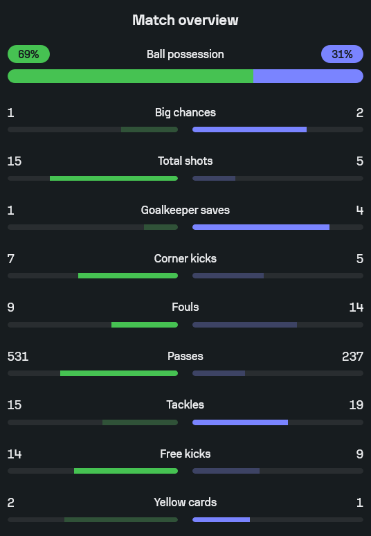 • ยิง 15 ครั้ง ส่วนทีมเยือนยิง 5 ครั้ง