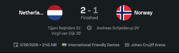 • เซฟ: เนเธอร์แลนด์ 1 – นอร์เวย์ 3