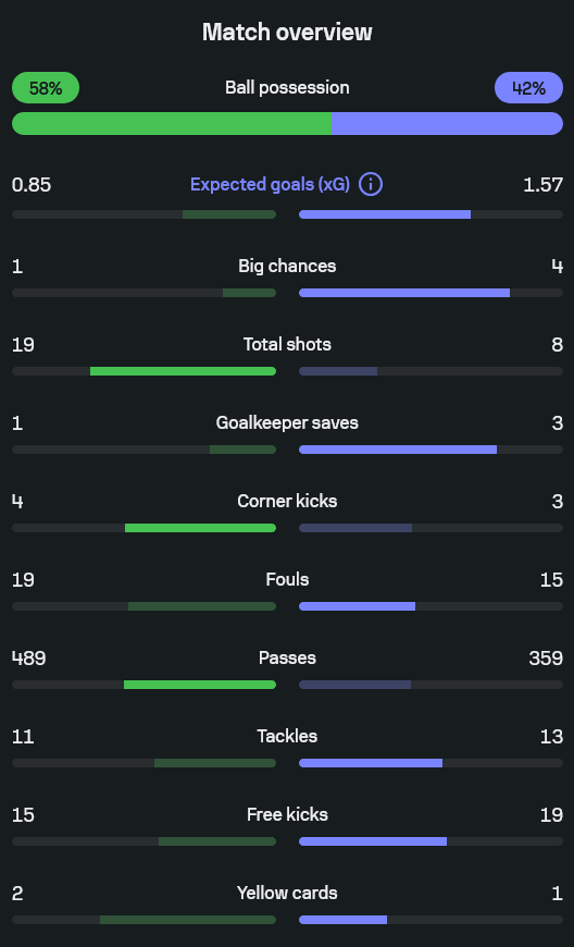 • ค่า xG วิลล่าดีกว่า 1.57 ต่อ 0.85