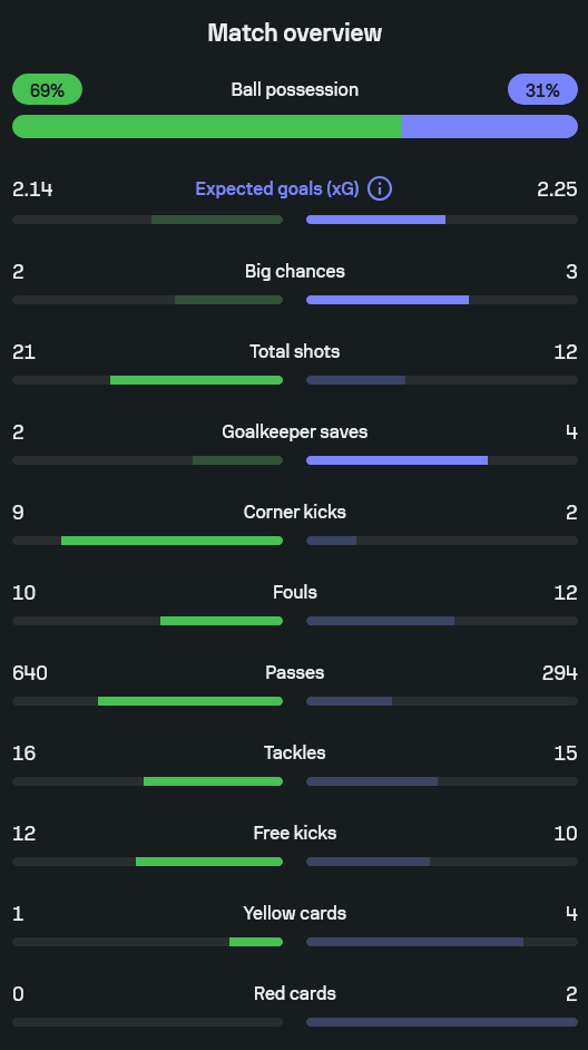 - บาเยิร์นครองบอล 69 เปอร์เซ็นต์