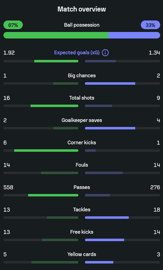 - เจ้าบ้านยิง 16 ครั้ง พาเลซยิง 9 ครั้ง
