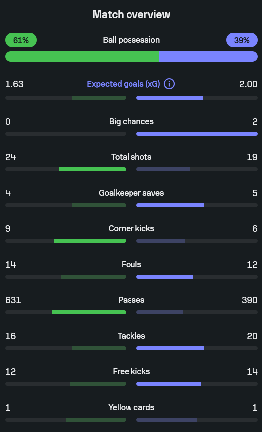 - แม้มาดริดบุกเยอะกว่า แต่ค่า xG เป็นรองเล็กน้อยที่ 1.63 ต่อ 2.00